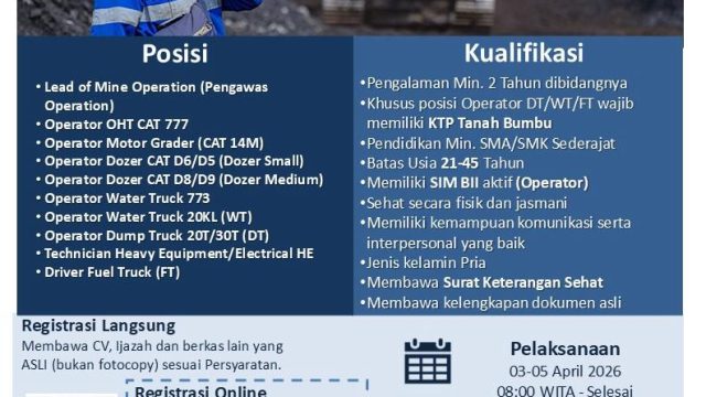 PT Cipta Kridatama Gelar Walk In Interview di Tanah Bumbu untuk Penempatan Site BIB
