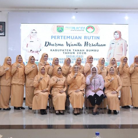 BATULICIN – Dharma Wanita Persatuan (DWP) Kabupaten Tanah Bumbu mengadakan pertemuan rutin yang dirangkai dengan sosialisasi pencegahan kecanduan smartphone bagi anak dan remaja. Kegiatan berlangsung di Gedung Sekretariat PKK, Kecamatan Simpang Empat, Rabu (11/2/2026).